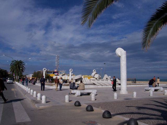PESCARA Piazza I Maggio - Rotonda sul mare con "La Nave" di Pietro Cascella (Scultura in marmo di Carrara a forma di nave a remi)
